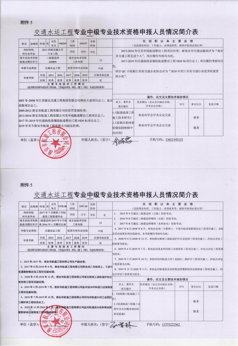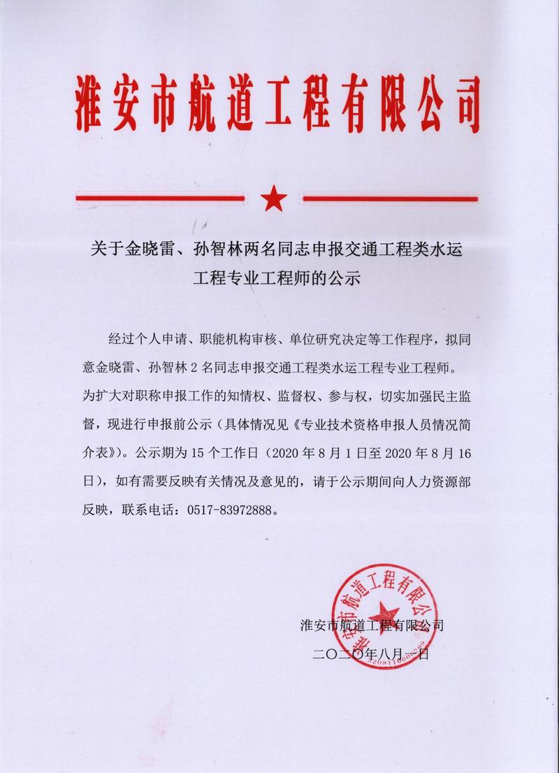 關(guān)于金曉雷、孫智林兩名同志申報(bào)交通工程類水運(yùn)工程專業(yè)工程師的公示